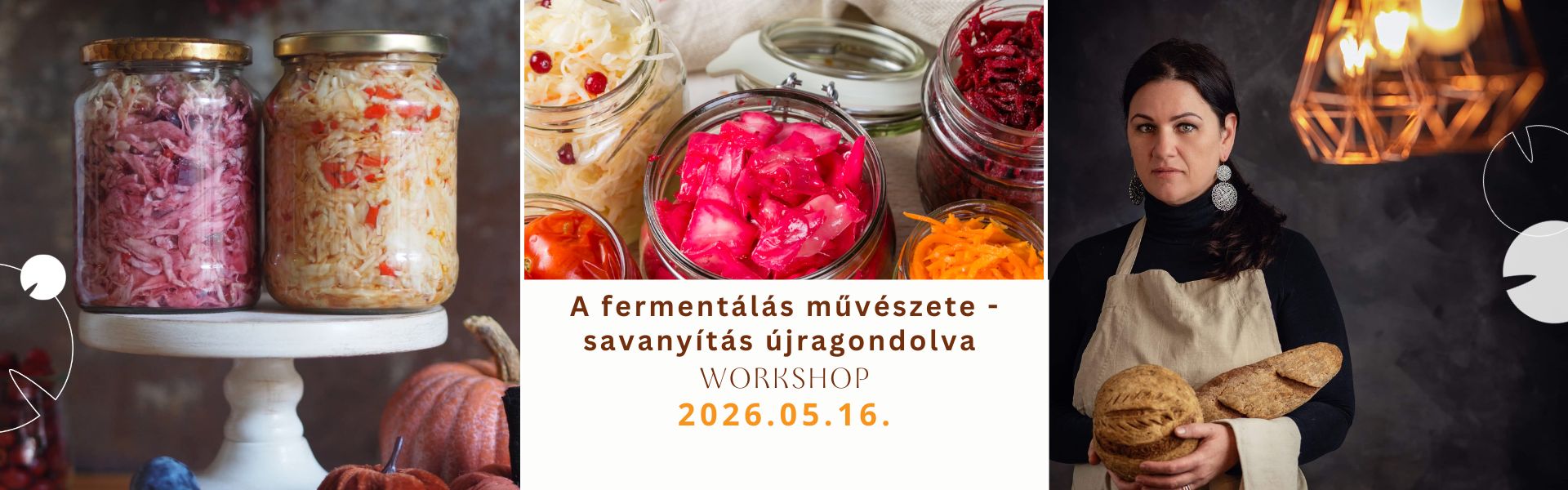 Workshopunk során a hagyományos konyha újra felfedezett alapkövét, a fermentálást mutatjuk be közérthető és gyakorlati formában. Megismerheti a fermentálás alapelveit és legfontosabb módszereit: először megmutatjuk a száraz sózásos és a felöntőleves laktobaktériumos erjesztést, ezt követően az indítós, azaz starteres fermentálás világába nyerhet betekintést. A klasszikus savanyú káposzta mellett kreatívabb, izgalmasabb összeállítások is terítékre kerülnek, mint például céklás-tormás savanyúság, valamint megmutatjuk a savanyúságlevek sokoldalú, modern felhasználását is. Ha szeretné megtudni, miért fogyasszon naponta fermentált ételeket, és hogyan érdemes belevágni az otthoni fermentálásba - akár teljesen kezdőként is, akkor ezt a workshopot Önnek találták ki!